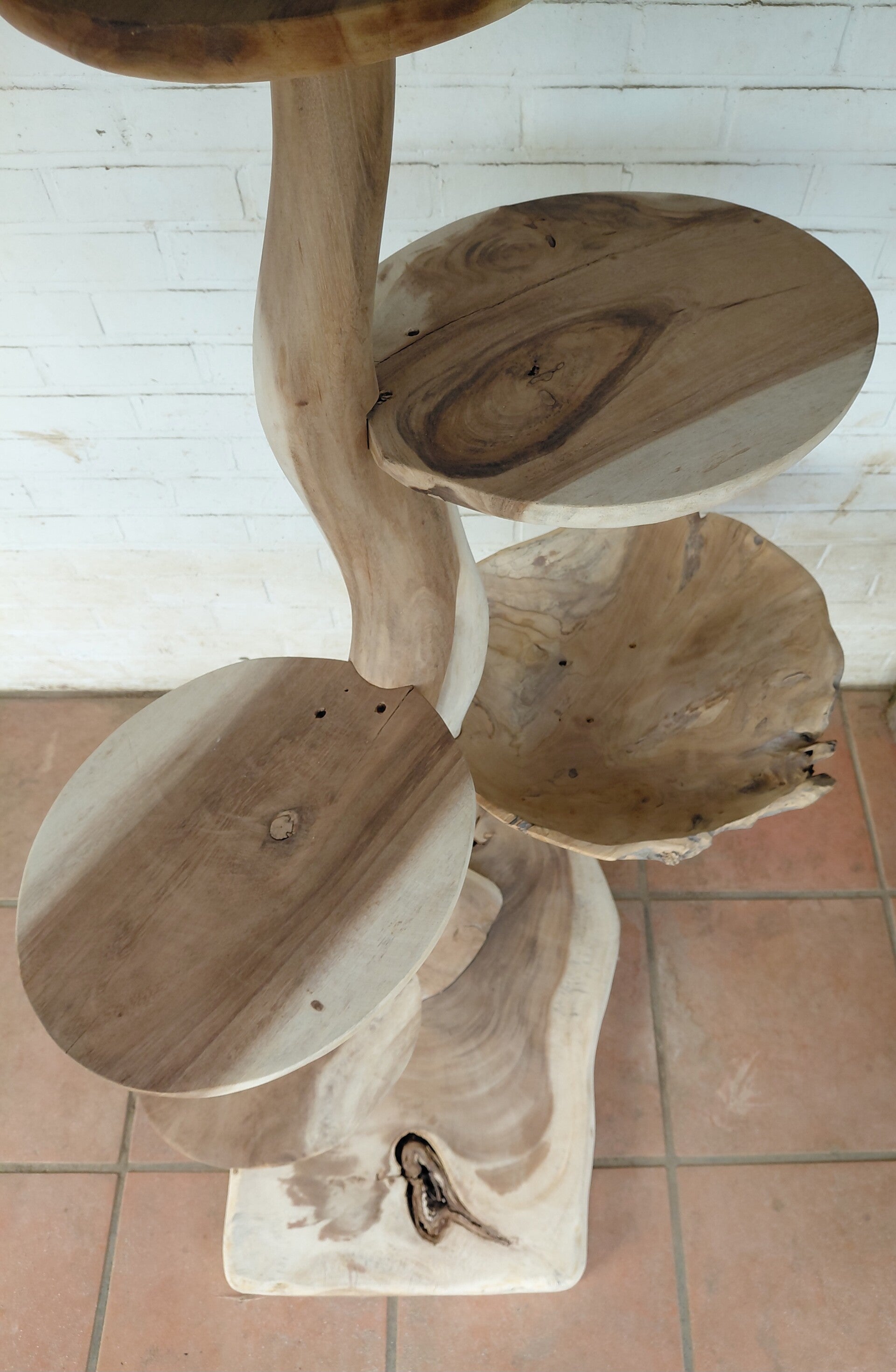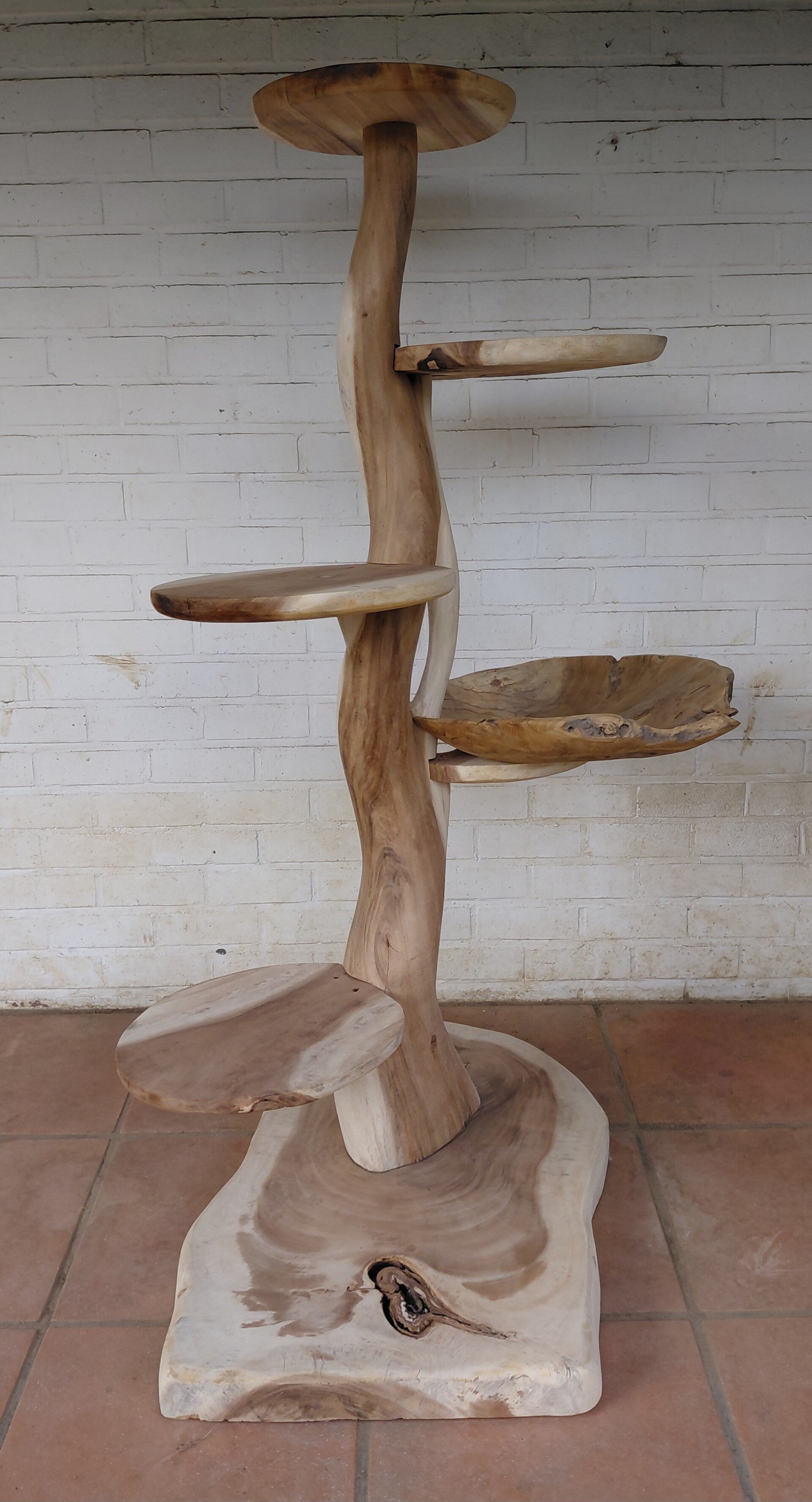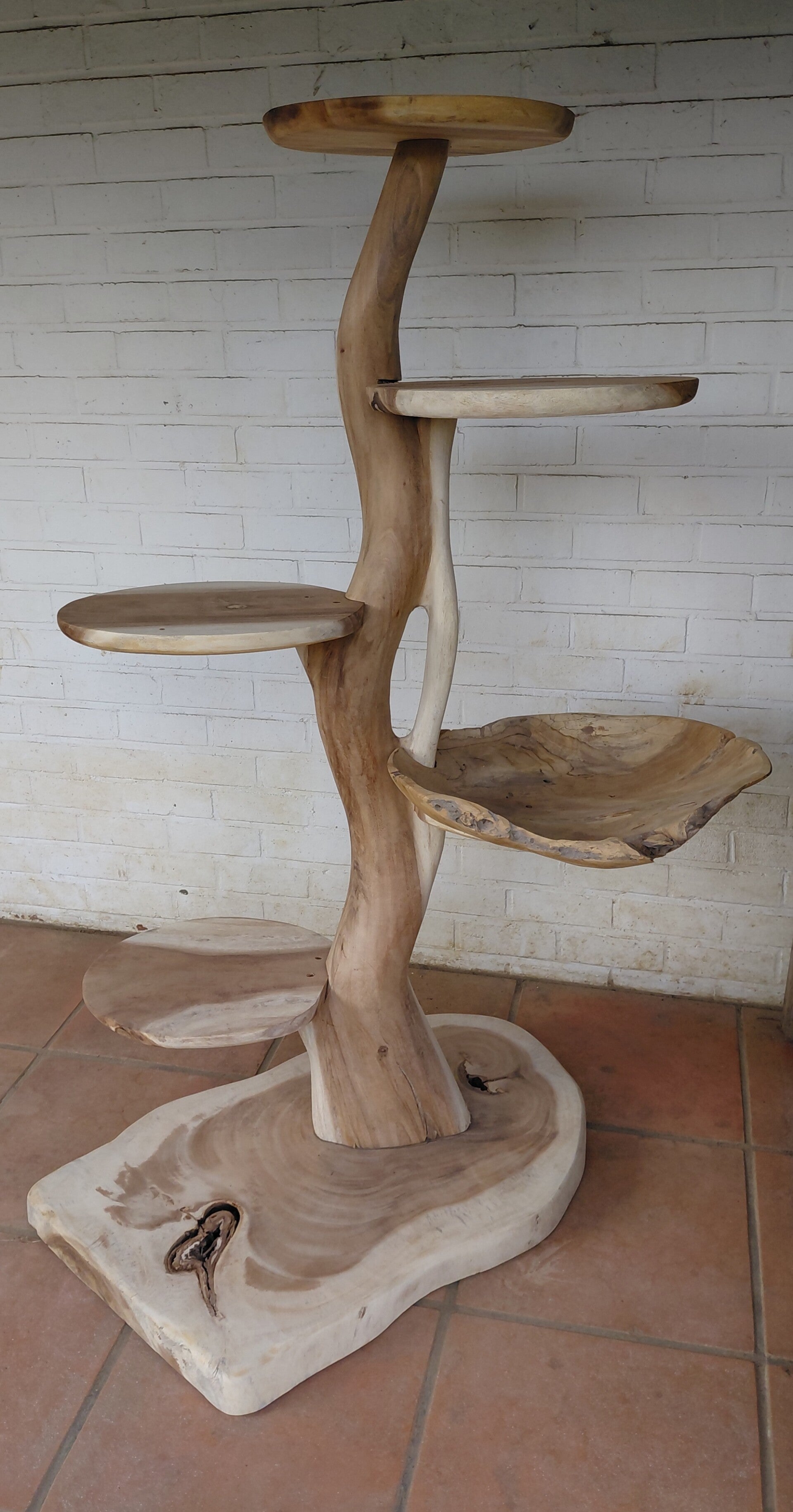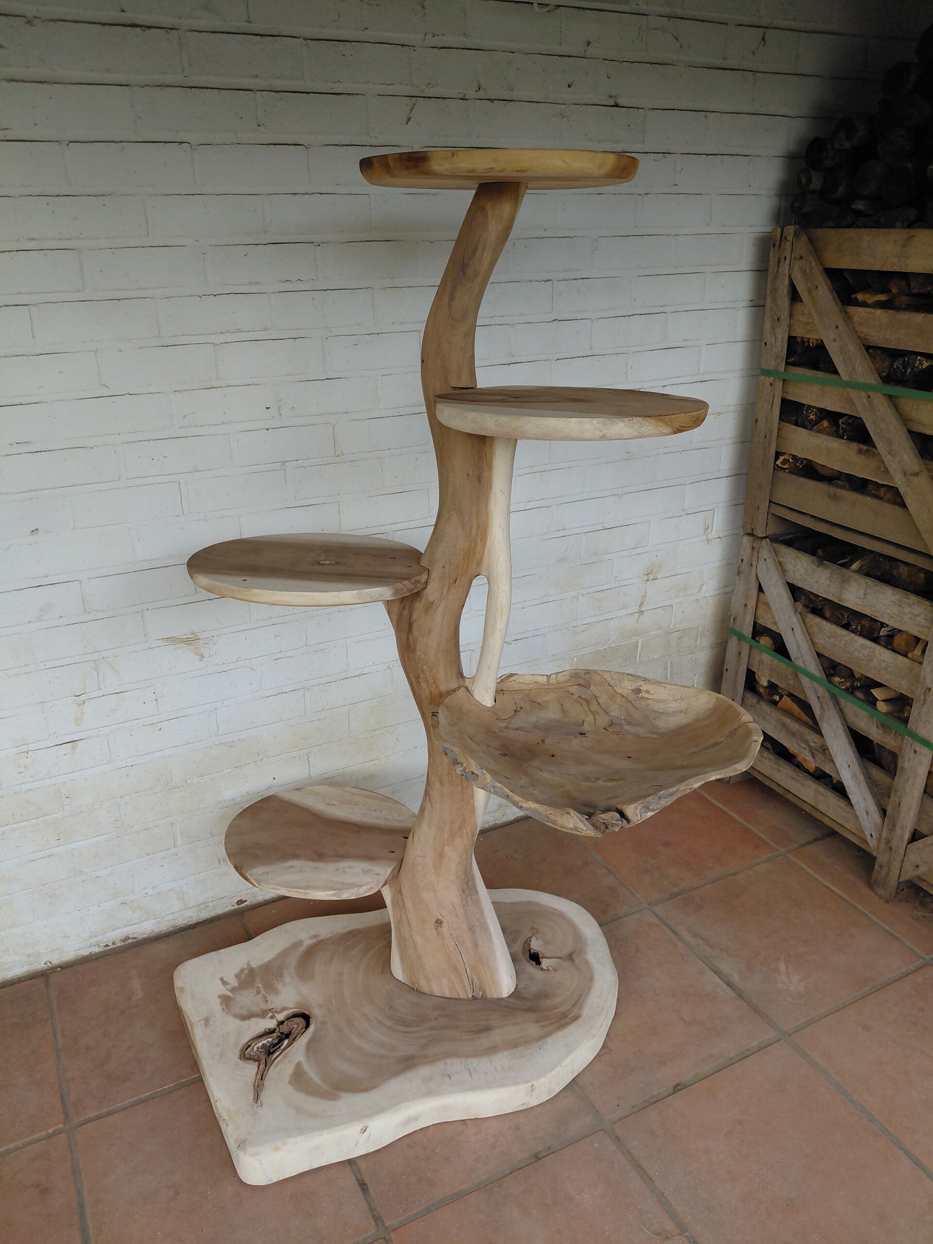 Massief houten kattenpaal met gemonteerde teakschaal. Diameter 50cm -10% korting op al onze toonzaalmodellen.