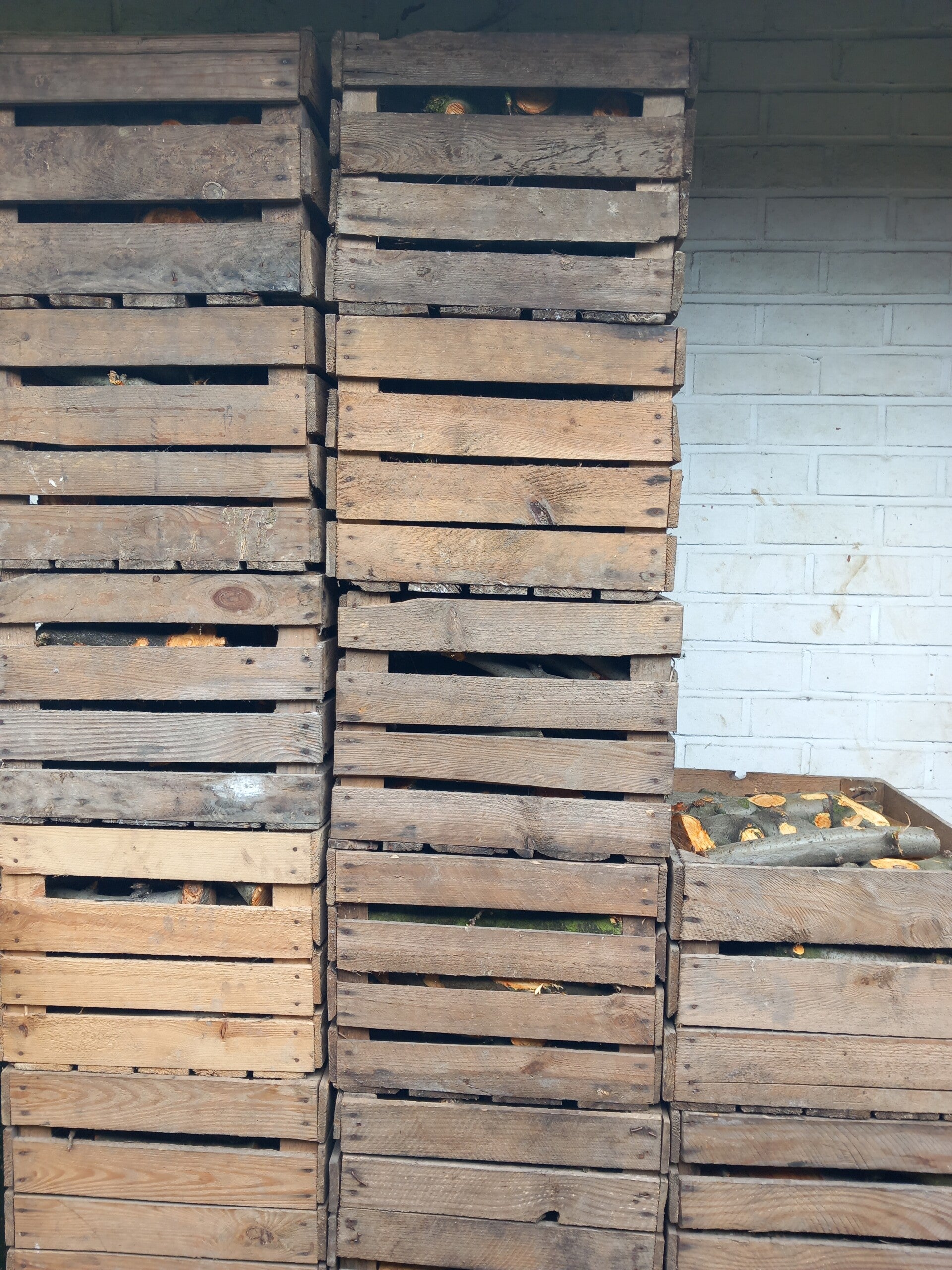 Je hebt 1ste keus. Gebruikte fruitkisten die een geringe torsie hebben.